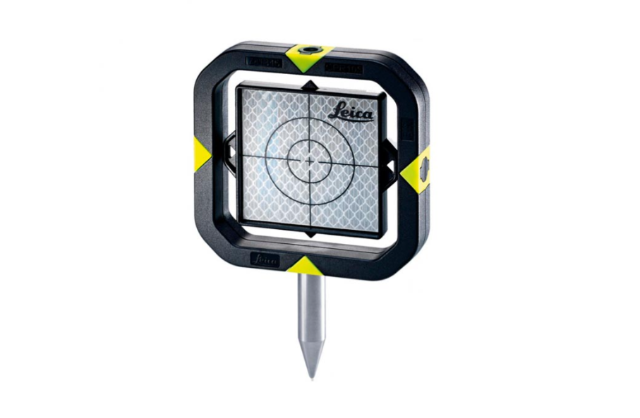 Reflector único con dianas reflectantes de dos lados Leica GPR105, ambos lados con constante 0. En el soporte de polímero con rosca de ¼”. Alcance de hasta 250m